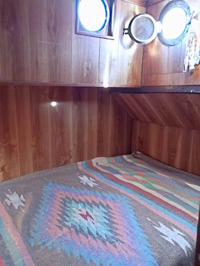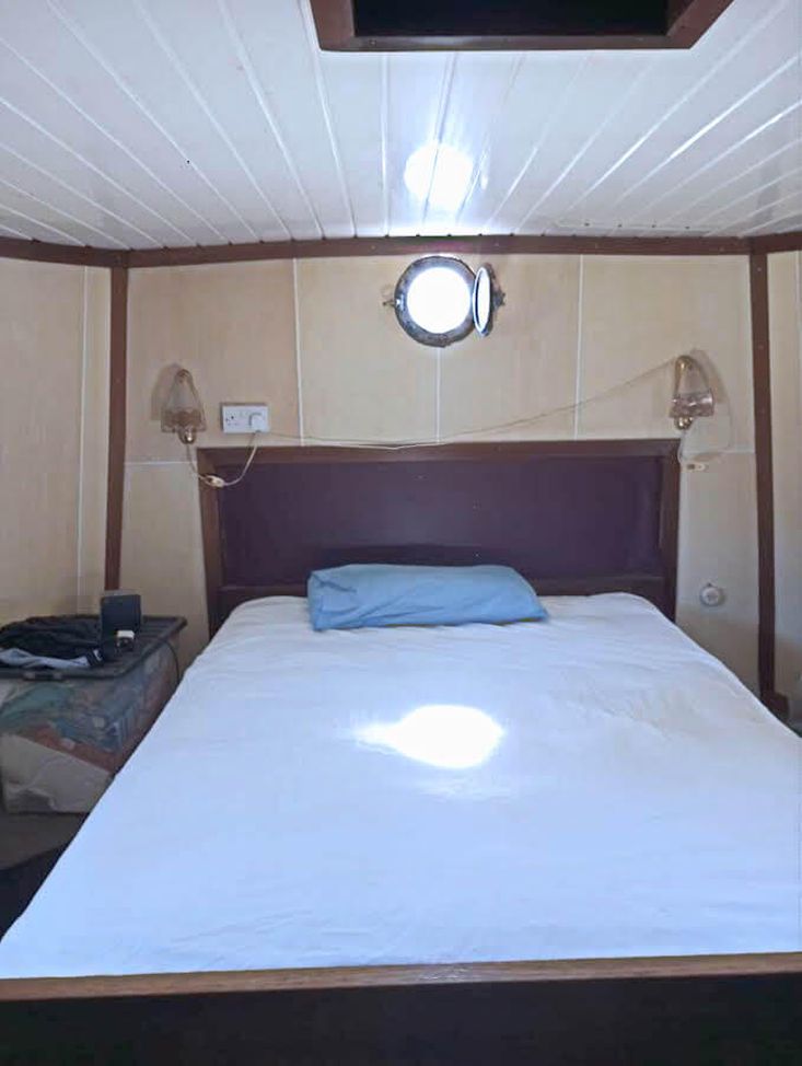 A second stairway from the wheelhouse leads to a spacious aft double cabin, complete with built-in storage and wash basin. There is room to fit an additional shower and toilet if desired, adding great flexibility to the layout.