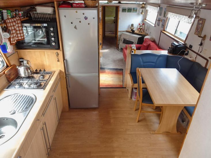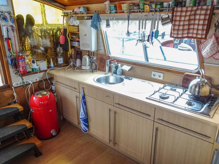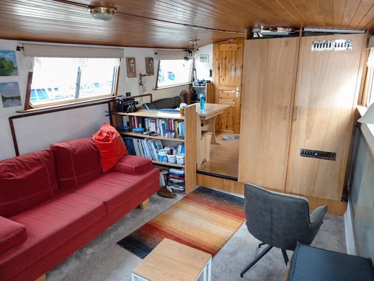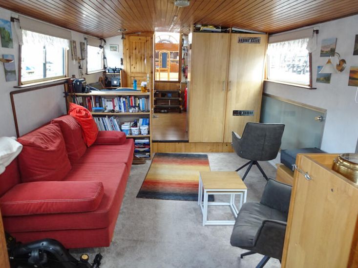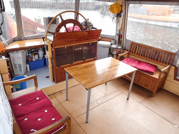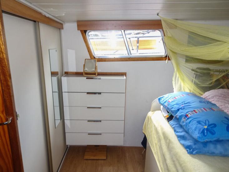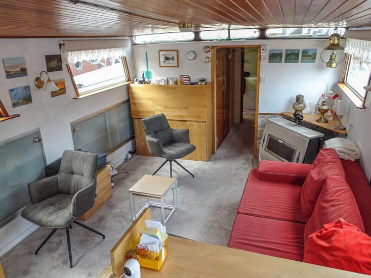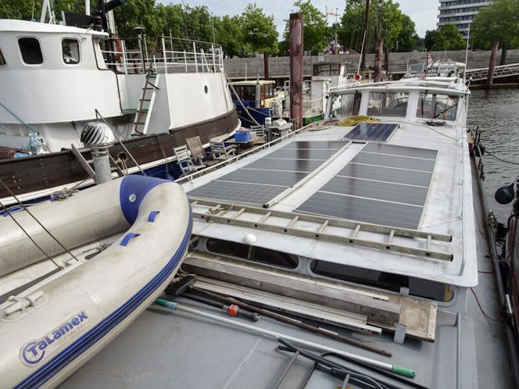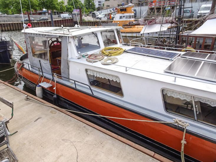 Charakterstarkes und robustes ehemaliges Binnenfahrt Frachtschiff (Motortjalk) aus dem Jahr 1909, das mit viel Liebe zum Detail in ein komfortables und autarkes Fahrendes Wohnschiff umgebaut wurde. Das offene Cockpit mit festem Verdeck bietet Schutz und Wohnkomfort zu jeder Jahreszeit. Der schallgedämmte Generator, die kürzlich vollständig erneuerte elektrische Anlage sowie die Kombination aus Solarpaneelen mit großzügiger Batteriekapazität sorgen für Energieunabhängigkeit an Bord, auch ohne Landstrom. Das praktische Layout an Bord umfasst einen großzügigen Salon, eine längsschiffs angeordnete Kombüse, zwei Kabinen mit insgesamt drei Schlafplätzen, ein Badezimmer und einen separaten Toilettenraum. Mit einer Durchfahrtshöhe von ca. 2,70 Metern und einem geringen Tiefgang eignet sich dieses Schiff ideal für Reisen durch ganz Europa, einschließlich der französischen Kanäle. Auch in Deutschland, Belgien und den Niederlanden kommt dieses nicht zertifizierungspflichtige Wohnschiff, Typ Motortjalk, hervorragend zur Geltung. Ein ideales Schiff für das dauerhafte Wohnen oder zur Freizeitnutzung, mit dem Charme der Vergangenheit und dem Komfort von heute.