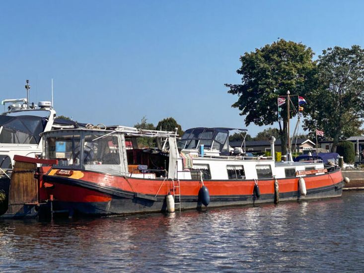 Characterful and robust former inland cargo vessel (Motortjalk) from 1909, which has been thoughtfully and meticulously converted into a comfortable and self-sufficient liveaboard Dutch Barge. The open cockpit with fixed canopy offers shelter and living comfort in all seasons. Thanks to a sound insulated generator, a recently upgraded electrical system and the combination of solar panels with generous battery capacity, the vessel is well equipped for a long stay on board, even without shore power. The practical interior layout includes a spacious salon, a longitudinal galley, two cabins with a total of three berths, a bathroom and a separate toiletroom. With an air draft of approximately 2.70 meters and a shallow draft, the vessel is ideal for cruising throughout Europe, including the French canals. This certificate-exempt sailing Liveaboard, type Motortjalk, is also perfectly suited for navigation in Germany, Belgium and the Netherlands. An ideal vessel for permanent residence or leisure cruising with the charm of yesteryear and the comfort of modern living.