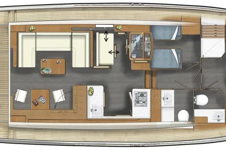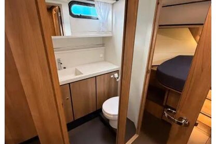 Powered by two Yanmar 4JH110 inboard diesel engines, it promises efficient cruising. The yacht's maximum hull speed reaches an impressive 9.2 knots, making it perfect for leisurely voyages. With a cruising range of 600 kilometers, you can explore distant shores with confidence. The interior features two well-appointed cabins, providing ample space for relaxation and rest.