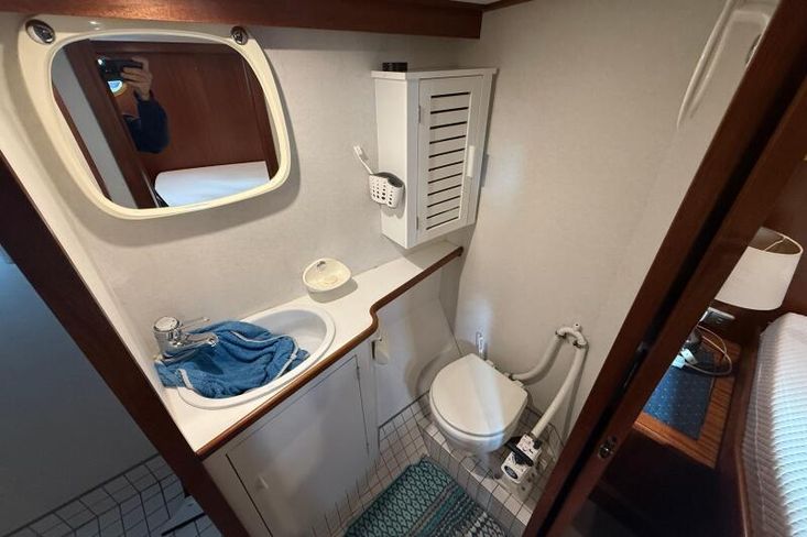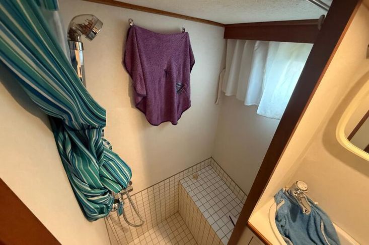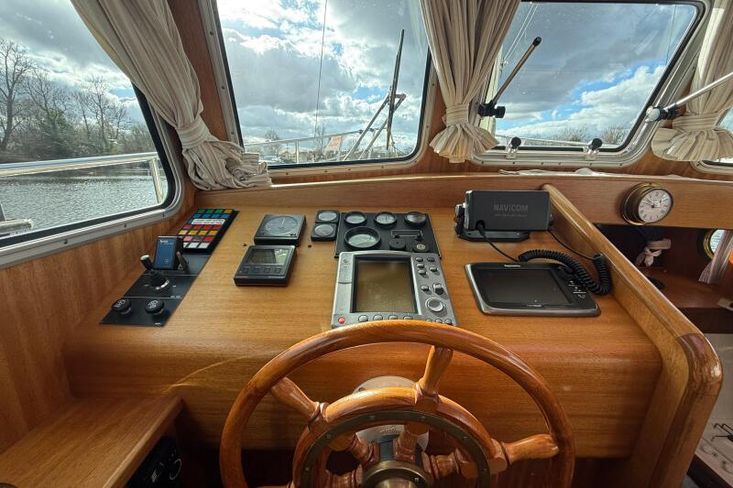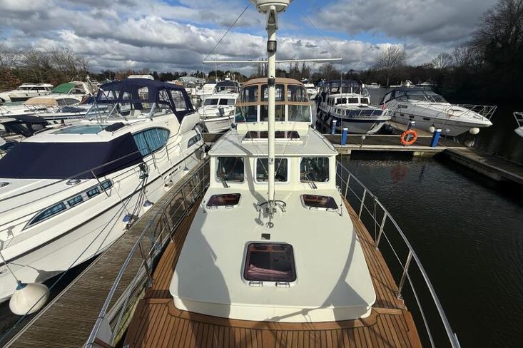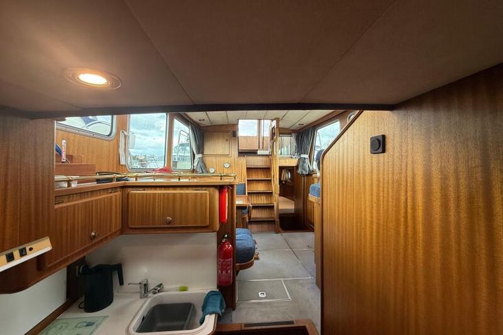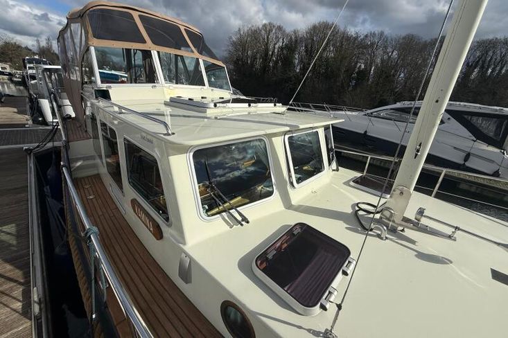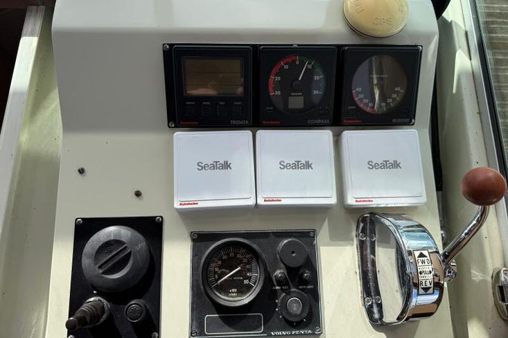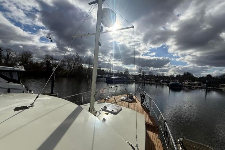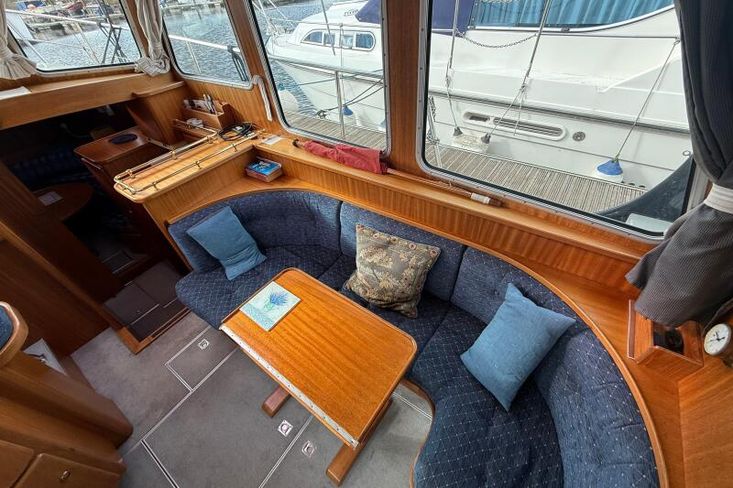 Equipped with a single Volvo Penta TMD41 B engine, Kamina allows for an efficient cruising experience, whilst being easy to handle on and off of moorings. With two generous cabins and two heads, this boat offers ample accommodation for family and friends, making it perfect for extended adventures afloat. The thoughtful design and spacious layout provide comfort and convenience for all onboard.